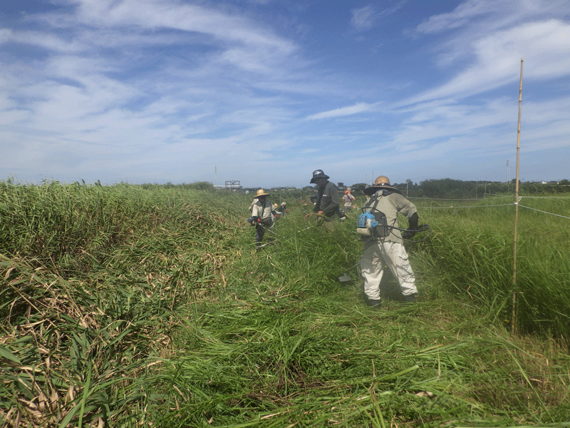毎年、暑くなる一方ですがこの時期にヨシ刈りをしなければなりません。ヨシの生育場所が増えると希少な湿生植物の生育場所が奪われてしまいます。