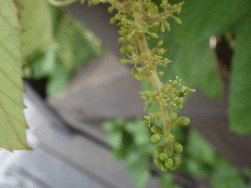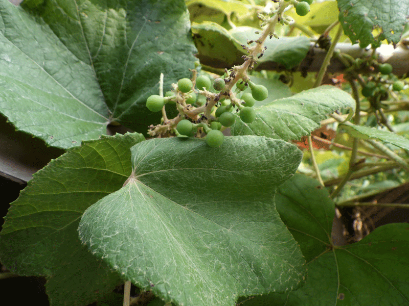管理棟前の通路にエビヅルの実が大きくなっています。
