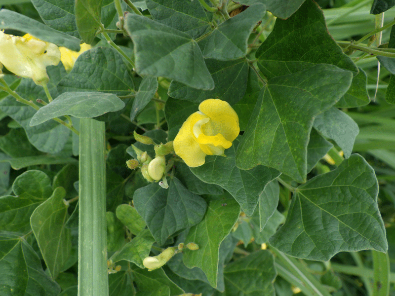 もう少し、豆果が大きくなると茎の上側に花が咲きます。
