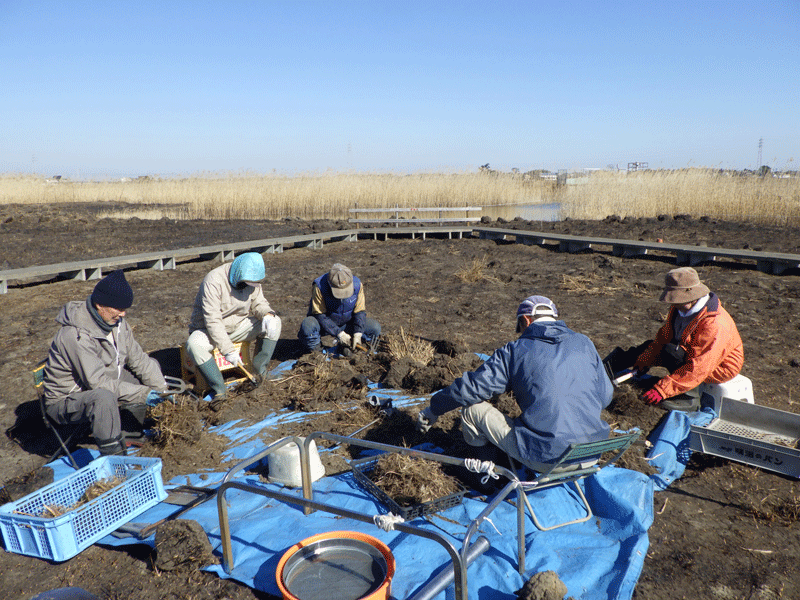 ススキ株の回りに付いている土にはたくさんの希少な植物の種子が含まれています。