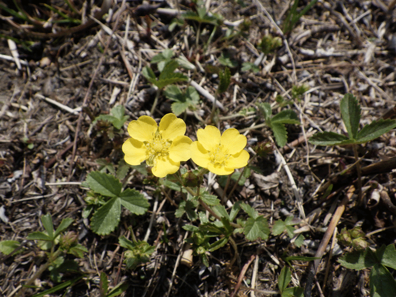 ミツバツチグリ(群落一面が黄色になっています)