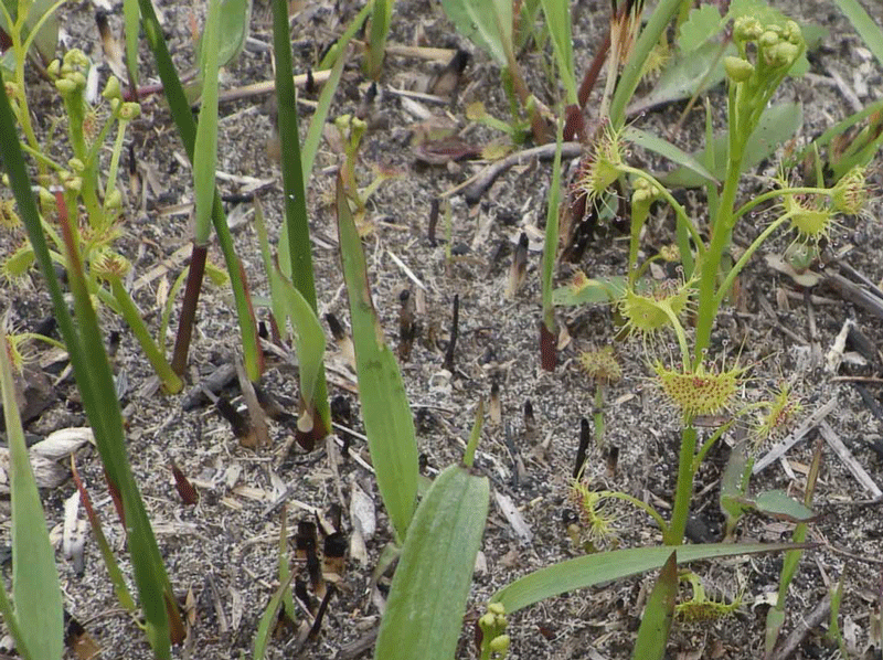 イシモチソウの芽生えがあちこちで見られるようになりました。5㎝位になっているものもあります。トキソウも芽生えています。花が待ち遠しいですね。