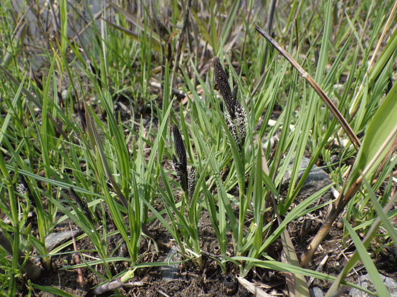 ハルリンドウが見頃です。その他ではアゼスゲ、スズメノヤリ、スイバ、カラスノエンドウなどが見られます。ハイニガナが咲き始めました。